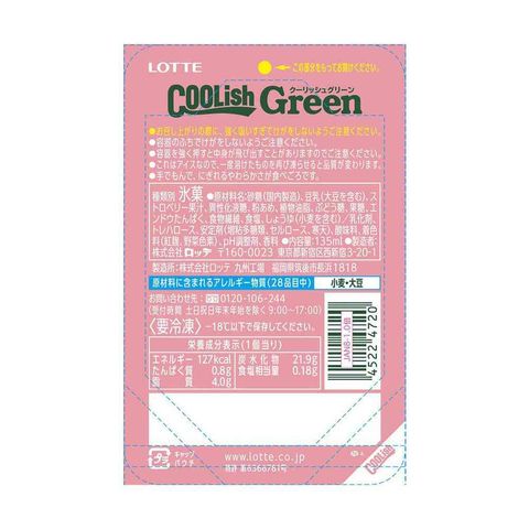 ◆ロッテ クーリッシュ Green ストロベリー135ml×24個【直送品・クール便】 返品・キャンセル・他商品と同時購入は不可