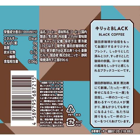 ◆[冷蔵] 猿田珈琲 キリッとBLACK ブラックコーヒー 無糖 235ml×12本 メーカー直送 クール便 ▼返品・キャンセル不可【他商品との同時購入不可】