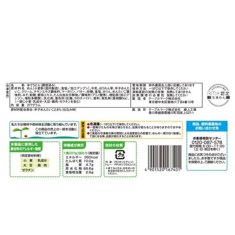 ◆テーブルマーク お皿がいらない 明太クリーム うどん277g×12袋【直送品・クール便】 返品・キャンセル・他商品と同時購入は不可のレビュー