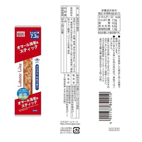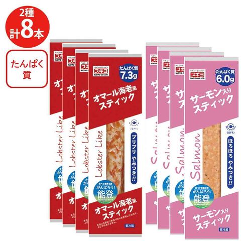 オマール海老風スティック×4本/[冷蔵] スギヨ サーモン入りスティック ×4本/を詰め合わせております。