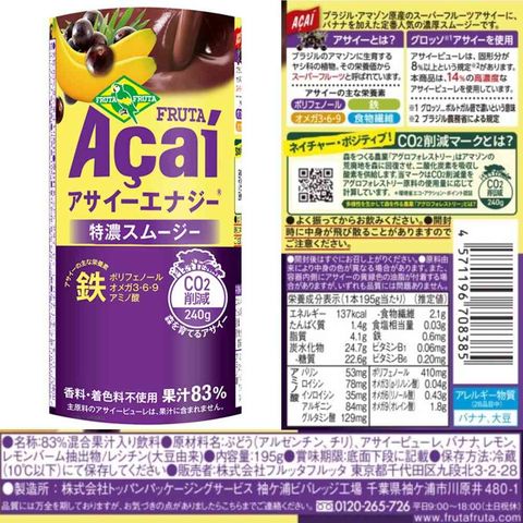 ◆[冷蔵] フルッタフルッタ アサイー ドリンク 3種各5個(エナジー特濃・エポーフェ・ピタヤ)3種各5個【直送品・クール便】 返品・キャンセル・他商品と同時購入は不可