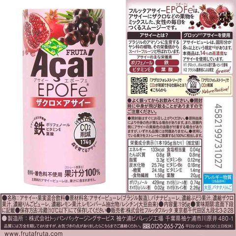 [冷蔵] フルッタフルッタ ピタヤスムージー 195g×5本/[冷蔵] フルッタフルッタ アサイーエナジー 195g×5本/[冷蔵] フルッタフルッタ アサイーEPOFe 195g×5本/を詰め合わせております。