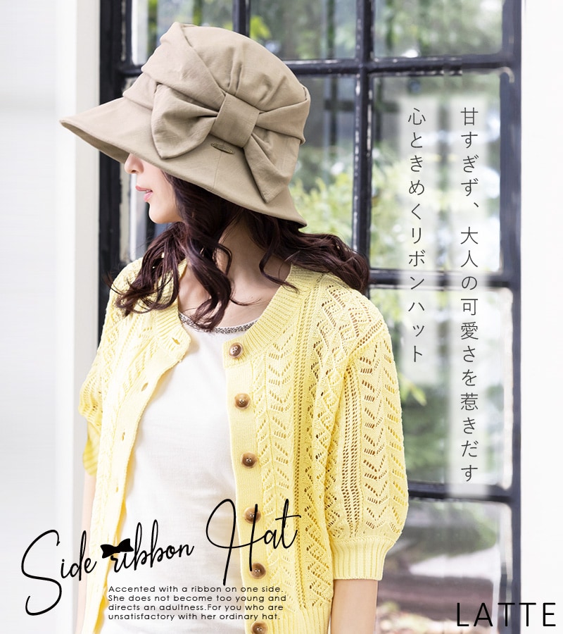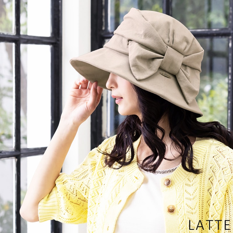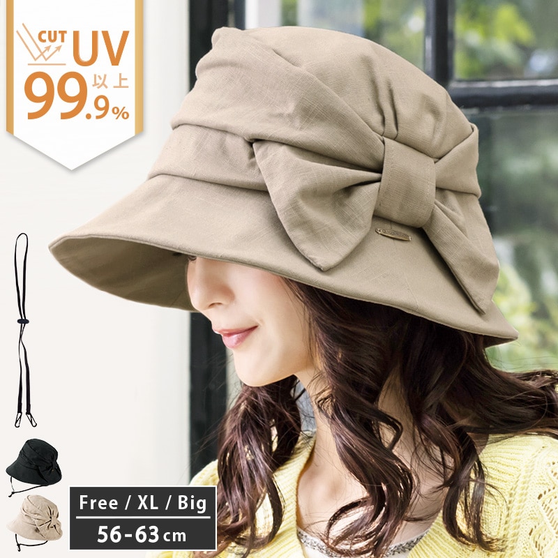 【12/11.23:59まで半額セール2550円】 帽子 レディース 大きいサイズ UV 紫外線 カット 「サイドリボンQUEENHAT」 人気 つば広 日焼け 運動会 旅 春 夏 春夏 母の日【XLサイズ(61cm)-ラテ(テープ調整)】 セール