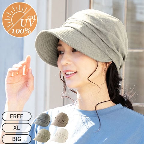 【12/11.23:59まで半額セール2100円】 帽子 レディース 大きいサイズ UV カット 「SSシャイニングキャスケット」 人気 つば広 日焼け ひやけ ひよけ 自転車 紫外線 100% カット 春 春夏 夏 母の日【BIG-カーキグレー】 セール