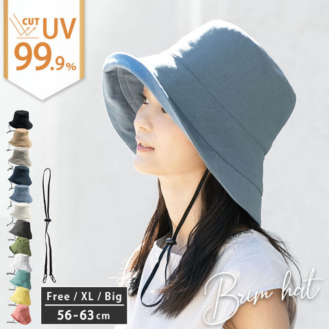 【12/15.23:59まで半額以下セール1001円】 帽子 レディース 大きいサイズ UV 紫外線 「紐付き麻ポリブリムハット」 大きい サイズ 人気 つば広 日焼け 運動会 旅 春 夏 春夏 母の日【BIG-ウォッシュブルー】 セール
