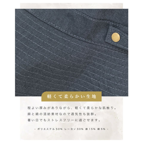 | ポリエステル50% レーヨン30% 麻15% 綿5% ※起毛感や毛羽立ちがあり、表面がピリング(毛玉)のように見える特性がございます。 |