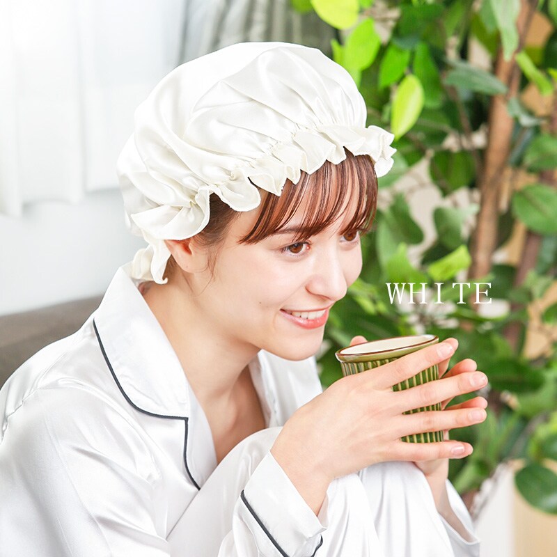 【1/21.23:59まで半額以下セール1001円】 ナイトキャップ シルク ゴム紐 シルクキャップ シルク100% ヘアキャップ 6A ロングヘア サイズ調整 レディース 髪 保湿 睡眠 就寝用 帽子 女性 シルク製 抜け毛 枝毛 ヘアケア 髪の毛 母の日【Fサイズ-ホワイト】 セール