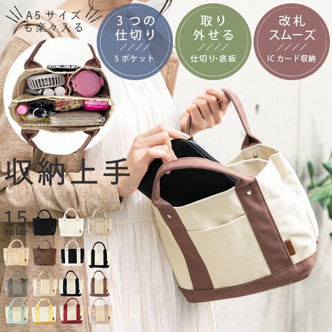 【1/21.23:59まで半額以下セール1001円】 ミニトートバッグ レディース 小さめ トートバッグ 仕切りトートバッグ 3つ仕切り 仕切りが取れる 軽量 軽いバッグ マザーズバッグ ママバッグ ランチバッグ ハンドバッグ キャンバス 母の日【--11アイボリーライトブラウン】 セール