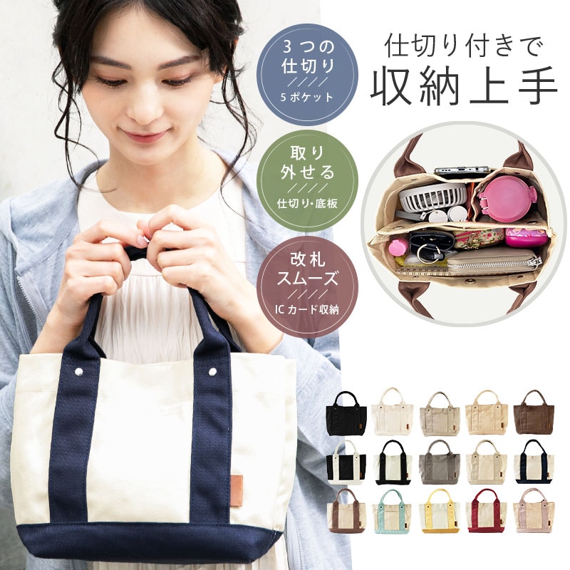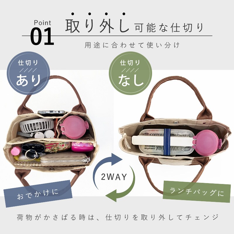 【1/21.23:59まで半額以下セール1001円】 ミニトートバッグ レディース 小さめ トートバッグ 仕切りトートバッグ 3つ仕切り 仕切りが取れる 軽量 軽いバッグ マザーズバッグ ママバッグ ランチバッグ ハンドバッグ キャンバス 母の日【--4ベージュ】 セール