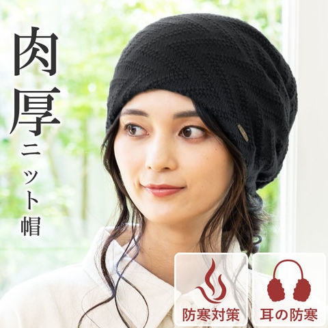 【12/11.23:59まで半額セール1900円】 帽子 レディース ニット帽 秋 秋冬 冬 「ライジングボリュームニット」 メンズ 耳の防寒 イヤマフ 自転車 人気 耳あて 防寒対策 防寒 対策 ニット ビーニー ノンストレス ワッチ 締め付けない 旅行【フリー57-64cm-1ブラック】