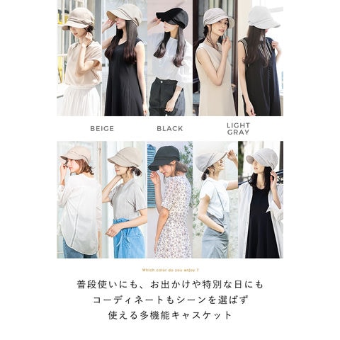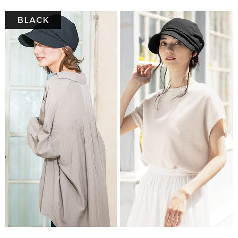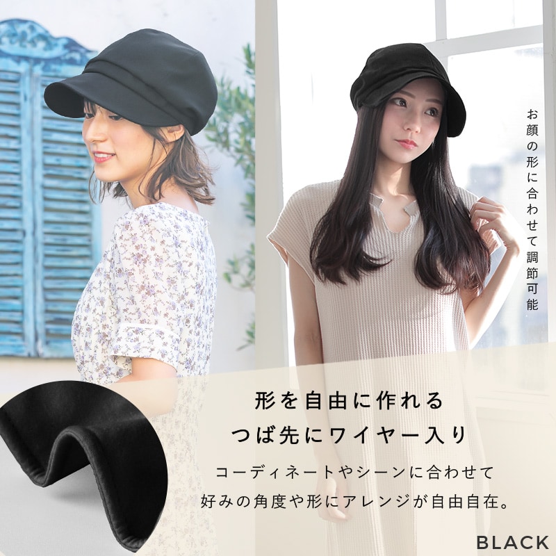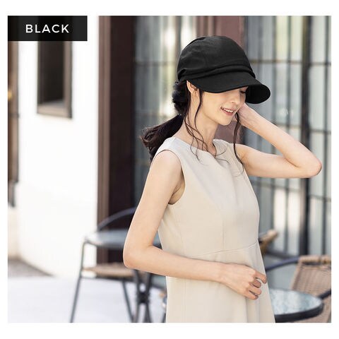 【12/11.23:59まで半額以下セール1001円】 帽子 レディース 大きいサイズ UV 紫外線 カット 「シャルンキャスケット」 帽子 防しわ 吸水 速乾 接触 冷感 人気 つば広 日焼け 運動会 春 夏 春夏 母の日【フリー56-58.5cm-ブラック】 セール