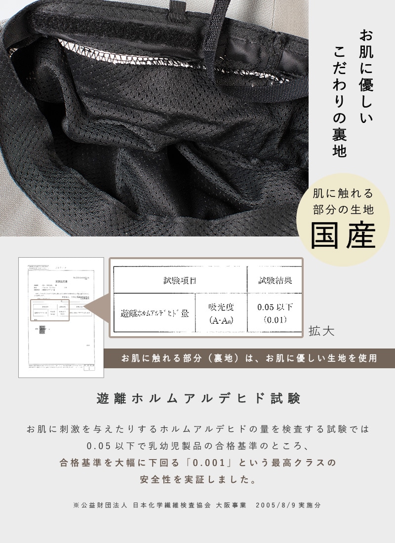| 本体:ポリエステル100% 裏地:ポリエステル100% |