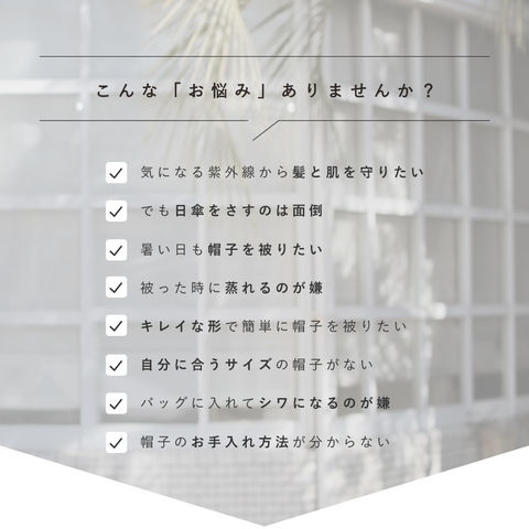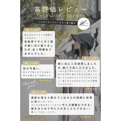 | ※高さの表記が同じ場合、デザインや形により被り心地、印象が異なります。着用時の高さを記載致しております。 ・画面上と実物では多少色が異なって見える場合がございます。 ・お取り扱いの前に品質ネームタグの記載をご確認下さいませ。 ・商品の品質ネームタグにカラー表記はございません。 ※モデル撮影は屋外の為、実際の商品と色合いが異なります。単品商品の撮影画像が実際の商品と色合いが近くなっておりますので、ご参照下さいませ。 ・マジックテープにて頭囲サイズ調整可 ・つば先ワイヤー入り |