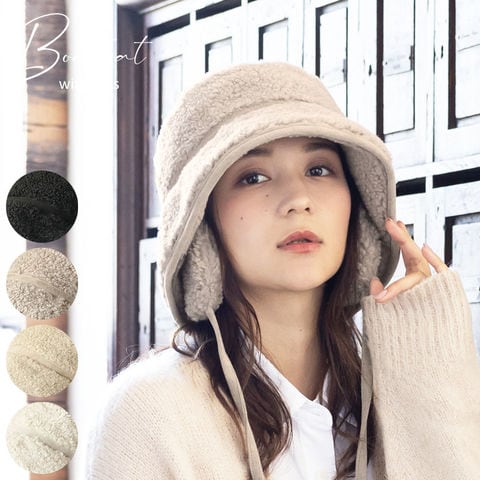 【1/6.9:59まで 半額以下セール 60%off 2560円】 帽子 レディース 大きいサイズ ハット バケット バケットハット ボアハット 耳付き かわいい あたたかい 防寒 雪 ボア 秋 冬 秋冬 防寒 登山 キャンプ 56-63cm【BIG-グレージュ】