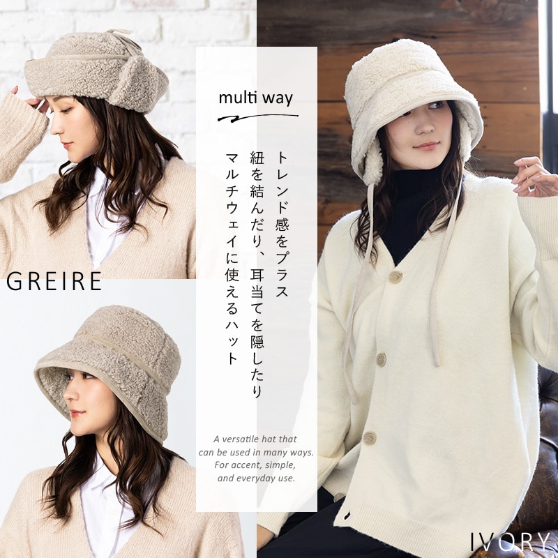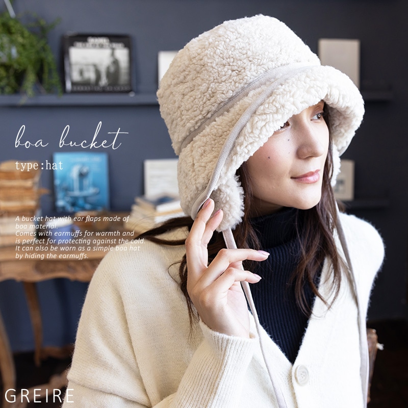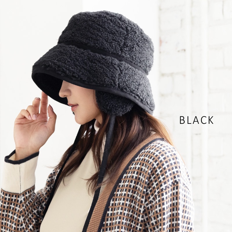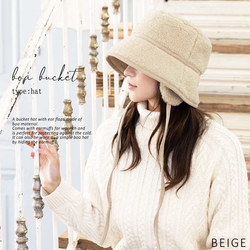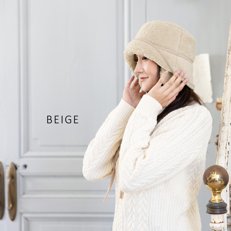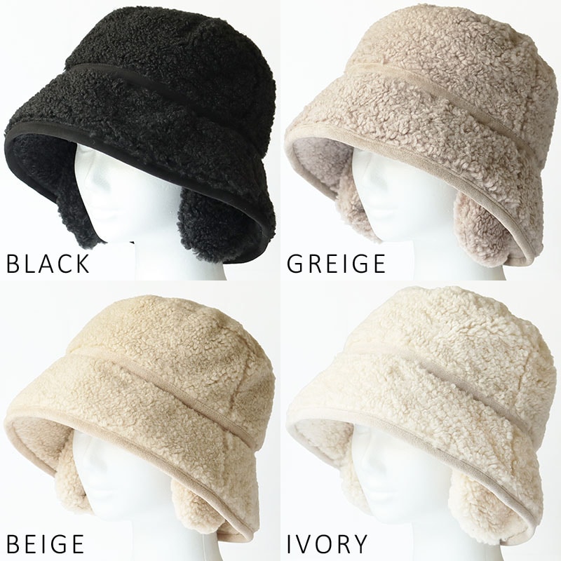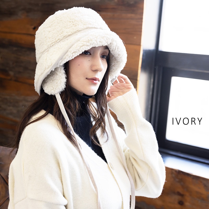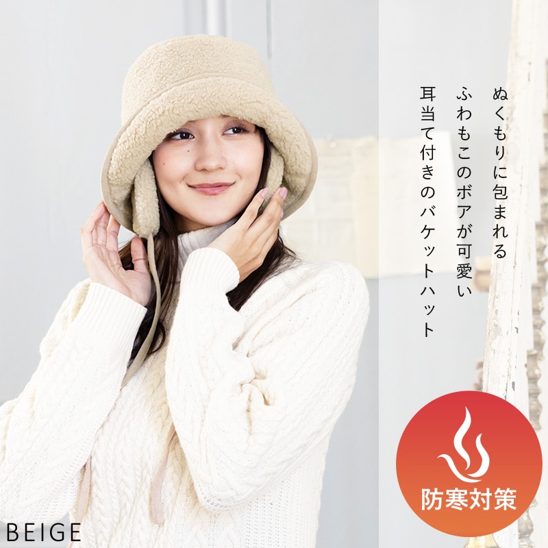 【1/6.9:59まで 半額以下セール 60%off 2560円】 帽子 レディース 大きいサイズ ハット バケット バケットハット ボアハット 耳付き かわいい あたたかい 防寒 雪 ボア 秋 冬 秋冬 防寒 登山 キャンプ 56-63cm【BIG-アイボリー】
