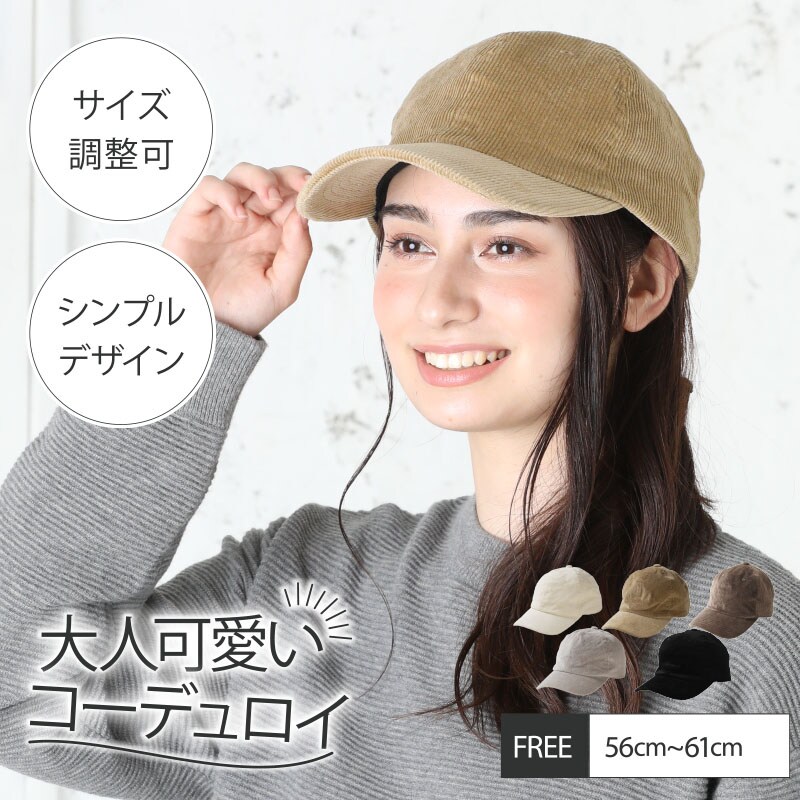 【12/15.23:59まで半額以下セール1001円】 帽子 レディース 秋 秋冬 冬 「コーデュロイBB」 大きいサイズ キャップ レディース 帽子 シンプルキャップ シンプル 無地 シンプル お出かけ アウトドア 大きい サイズ 深めキャップ 母の日【Fサイズ-アイボリー】