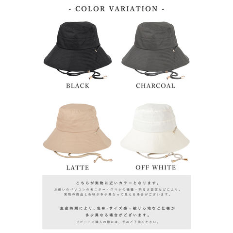 | ※高さの表記が同じ場合、デザインや形により被り心地、印象が異なります。着用時の高さを記載致しております。 (平置き)との記載がある場合、素材が柔らかい、伸縮性等の理由から、平置きでの計測サイズを記載致しておりますので、ご確認下さいませ。 ・画面上と実物では多少色が異なって見える場合がございます。 ・お取り扱いの前に品質ネームタグの記載をご確認下さいませ。 ・商品の品質ネームタグにカラー表記はございません。 ※モデル撮影は屋外の為、実際の商品と色合いが異なります。単品商品の撮影画像が実際の商品と色合いが近くなっておりますので、ご参照下さいませ。 ・UVカット ・あご紐 ・頭囲サイズ調整テープ ・裏地、汗帯、接触冷感 |