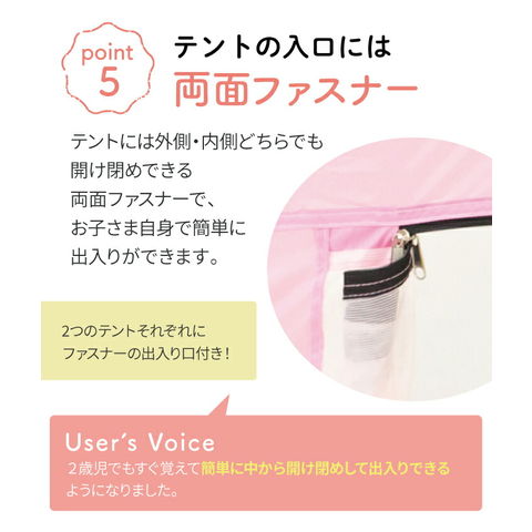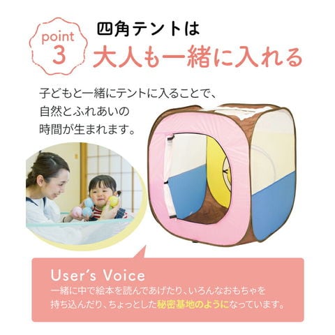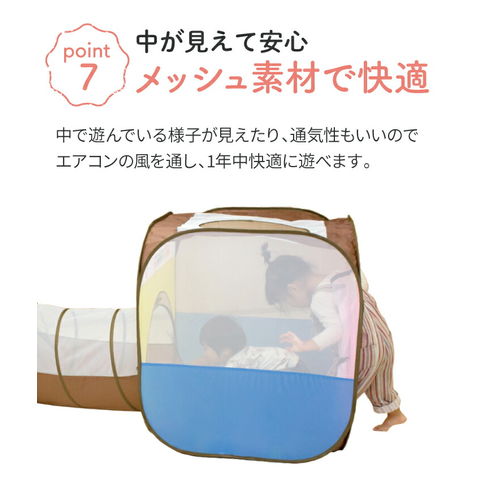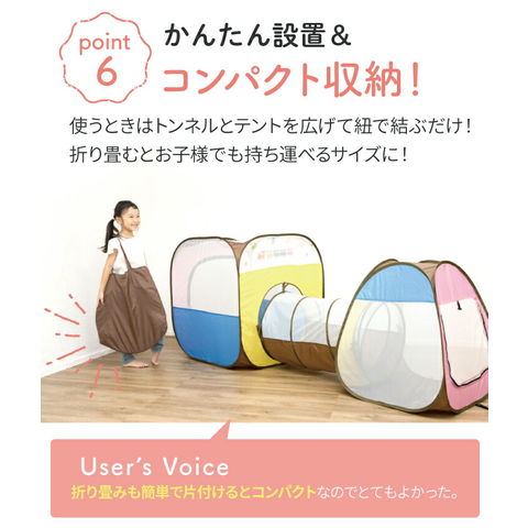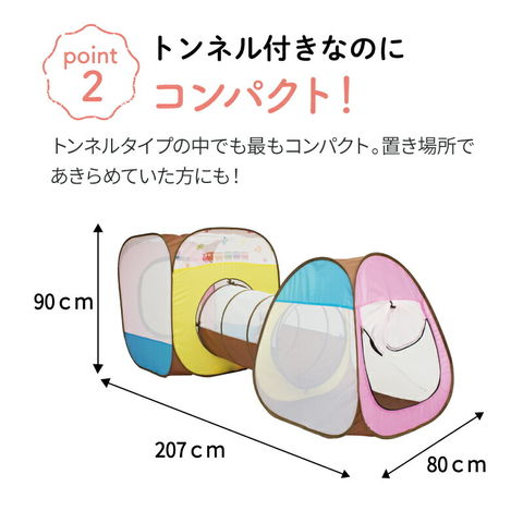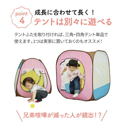 トンネル付きの広々テント 三角テント、四角テント単品でも遊べる! |