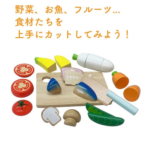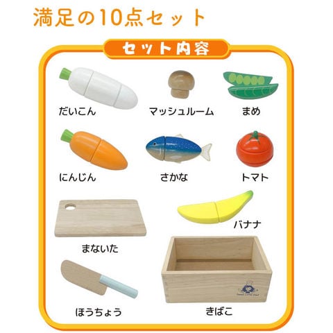 | セット内容 | 木箱、まな板、包丁、大根、人参、トマト、バナナ、魚、豆、マッシュルーム |