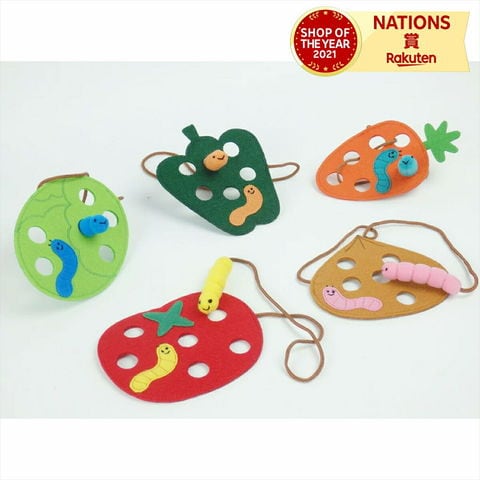| 布製ひもとおし やさいシリーズ くだものシリーズ 野菜 果物 あおむし 紐通し 指先 トレーニング おもちゃ 玩具 男の子 女の子 子供 孫 プチギフト |