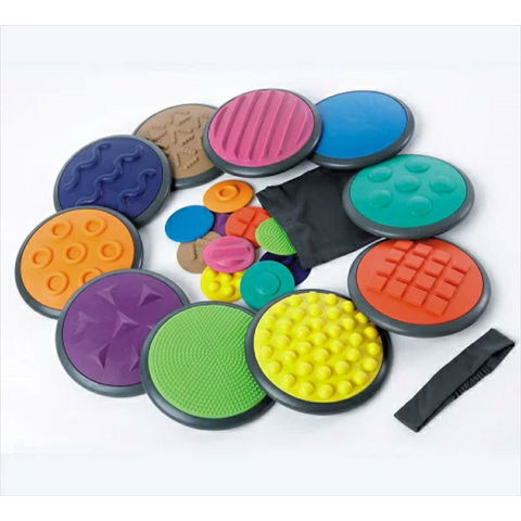 | 商品説明 | 手と足の感覚を研ぎ澄まそう 目隠しをして、足の裏と手からの情報で同じ柄のディスクを当てます。飛び石としても遊べます。 |