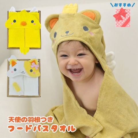 | 商品説明 | 可愛い天使の羽が付いたフードベビーバスタオル。お風呂上りにサッとかぶれてとても便利。あっという間に可愛い動物に大変身!赤ちゃんもごきげん。夏の海やプールでも可愛くて大人気!! 2年通していつでも使えるものだからギフトには最適です。お箱入りでご用意しました。 |
