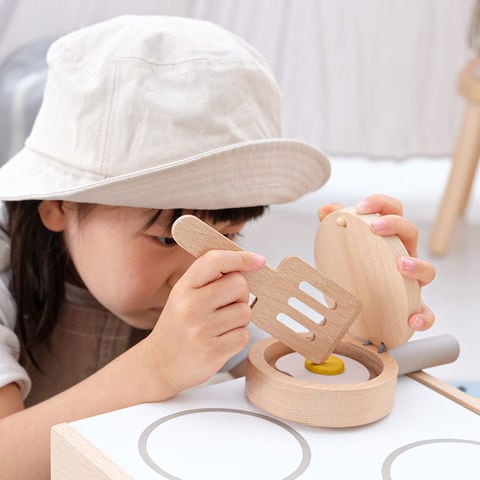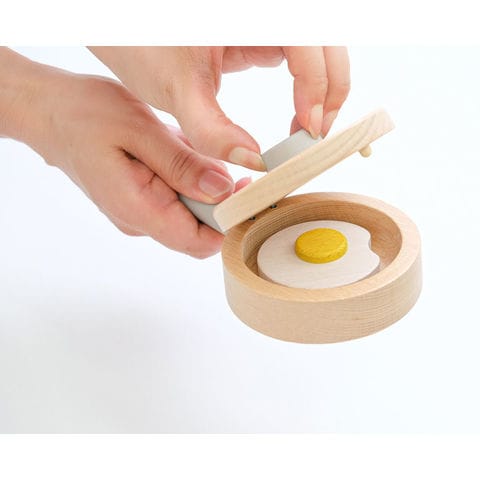 | 商品説明 | POP PAN(ままごとがっき) ポップパン“Pop pan” はお料理の音が楽しめる小さなフライパンのおもちゃです! フライパンにハンバーグを入れて、フライパンをふると・・・ おいしい色に変わると音もかわるよ! めだまやきは、黄身がぐるぐるっ。 上手に焼けるかな? ままごと遊びも楽しめます。 おうち時間にたのしい音を奏でて、家族やともだちにステキな食事をごちそうしましょう! ままごと遊びと音遊びが遊べる木のおもちゃです。 フライパンはカスタネットとして遊ぶことができます。 たまごはあら不思議?!黄身がほんものみたいにグルグルと動きます。 ハンバークは裏表の色が異なるので、ジュージュー 焼けたら裏返して出来上がり。 裏返しにすると音も変わります! |