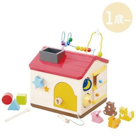 | 商品説明 | 置いてかわいい、遊んで楽しい! みんながわくわく、おもちゃのおうち「えんとつあそび」「音あそび」「かぎあそび」「回転あそび」「とびらあそび」「ごっこあそび」「ボール」「ビーズコースター」「型はめ」「シロフォン」 10種のあそびが詰まった、まなびがいっぱいのかわいいおうちです。ビーズコースターはひっくり返しておうちに中に収納できます。 かぎを回して扉を開けて…扉の横のお星さまはカラコロ音が鳴るよ 全4種ある動物ブロックでえんとつから入ったり、ごっこあそびをしたり… 屋根には楽しいビーズコースター、おうちの壁にはくるくる回るお月さまとお日さまが。 ボールをまわしてちょうちょがくるくる、扉をあけると鏡があるよ。 シロフォンで音あそび、まる、さんかく、しかくの型はめあそびも。 ビーズコースターの屋根は取り外し可能。ひっくり返してフタにもなるよ。あそび終わったらおうちの中にブロックを入れてお片付け♪ |