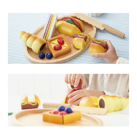 | 商品説明 | 職人さんごっこ パン職人 さくさく切ってひっつけて!こんがり焼きたてパンのできあがり!子供が大好きな5種類のパンが揃ったパン職人ごっこセットです。 ホットドッグのソーセージやデニッシュのトッピングはマグネットでつけられ、レタス・チーズ・トマト・ハムはサンドイッチパンとバゲットに自由にはさむことができます。 トレイの裏面でパンを切ることもできるので、パンナイフでさくさく切って手ごたえを楽しみましょう。 食への興味を育むとともに、ごっこ遊びを通じて想像力や社会性などを豊かに養います。 おいしそうなこんがりパンをプレートにのせて。半分に切ったらみんなで分けっこしよう! サンドイッチやバゲッドの中身を自由にアレンジ♪ホットドッグのソーセージやデニッシュのトッピングも取り外しができます。 |