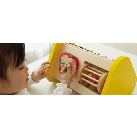| 商品説明 | たたいて、回して・・ドレミ♪ 今日は楽しい音楽会! ドラム・シロフォン・ギロ・ラトル・歯車の子どもが大好きな5つの音が楽しめるおもちゃです。 「たたく」「回す」「こする」という動作から音が出る楽しさを自分で発見し、音の違いも自然に理解していきます。音あそびを通して、音感を養い、情緒を豊かに育みます。さぁ、いろんな音を体いっぱい感じてみましょう。 スティックは中に収納できます |