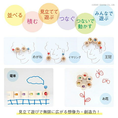 | 木のおもちゃ コビット6ピース 木製玩具 積み木 つみき ブロック チェーン 知育玩具 知育 想像力 創造力 室内遊び エドインター 北欧 Ed.Inter かわいい3歳 4歳 5歳 |
