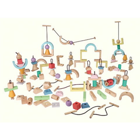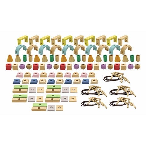 | セット内容 | ピース×100(丸アーチ・四角アーチ・立方体・球・直方体・円柱・円錐・台形・半円・プレート×各10)、ひも×20、あそびかたポスター・プラケース×各1 |