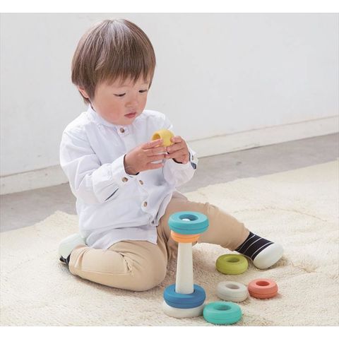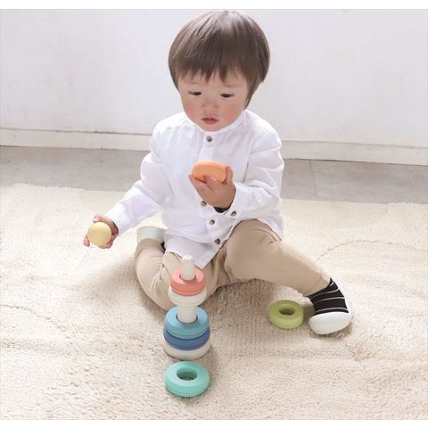 | 商品説明 | リングを入れて積み上げていくベーシックなスタッキングタワー。ポールがあるので狙って入れやすく、はじめてのスタッキングトイにぴったりです。 |