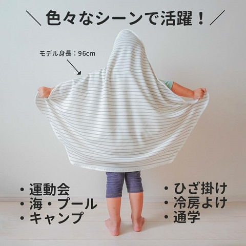 | 商品説明 | 赤外線と紫外線をブロックする機能生地「SHADAN(シャダン)」を使用した、多用途で使えるキッズUVカバー。 紫外線を遮蔽するUV効果と体感温度を3度下げる効果のある機能生地で夏のお出かけが快適に。 吸水速乾効果もあるので、汗などの水分を素早く吸収・拡散します。 運動会やその他屋外イベントなどでキッズの日焼け防止と暑さ対策に・・また被るだけではなく「自由」に使える大判タイプ (例:アウトドア、通学、ひざ掛け、クーラー避けの夏用ブランケット、など) |