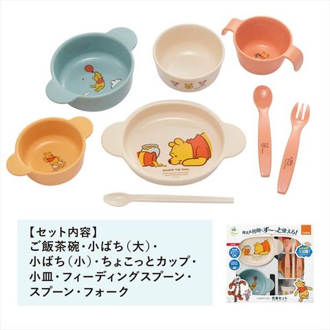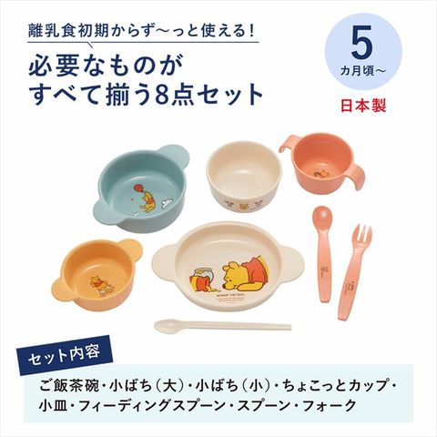 商品説明くまのプーさんデザインで楽しくお食事。 離乳食初期からず~っと使える。必要なものが全て揃う8点セット 電子レンジ/食洗機OK