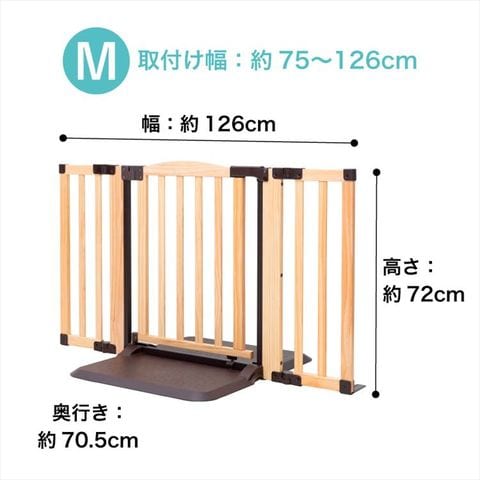 | 商品説明 | 注:階段上では使用できません。取り付け対応幅:75~126まで 跨がず通れて簡単設置。ドア付き木製タイプが新登場。 安心・安全のダブルロック機能、扉は両開き式です。 |