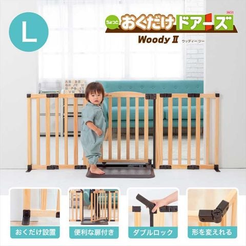 ちょっとおくだけドアーズ WoodyII Lサイズ ナチュラル(NA) 日本育児 ベビーゲート セーフティゲート ベビーフェンス ダブルロック機能 ベビー 赤ちゃん 子供 出産準備