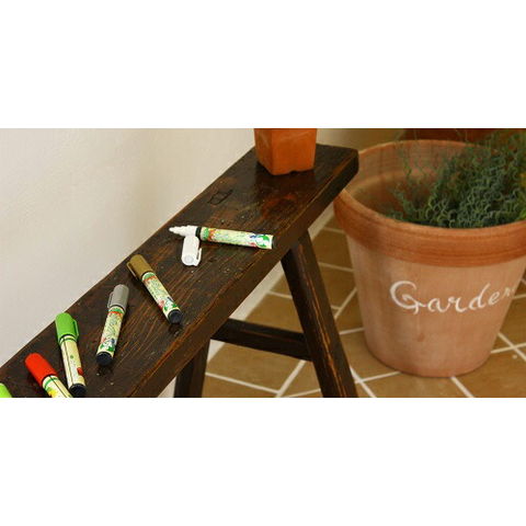 少しだけ、書いたり塗ったりしたいけど、ペンキを出す程でもない、油性のマーカーじゃなく、木の色や、鉢の色に負けずに発色する物が欲しい!