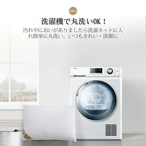 また、気軽に洗える「洗濯機OK」の枕で、ご自宅で丸洗いが可能です。清潔で気持ちよく毎日使えます。