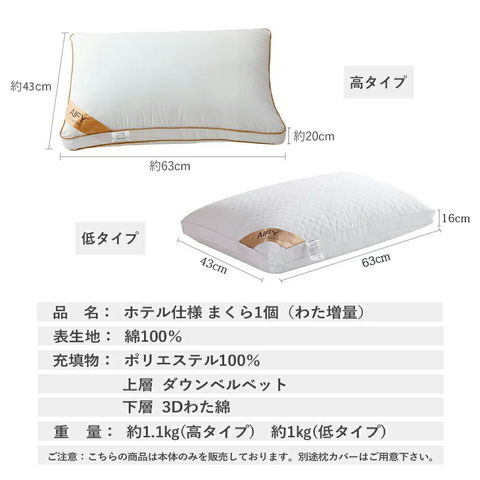 枕 洗える ホテル 枕 まくら マクラ 快眠枕 ホテル仕様枕 高め 低め 安眠 安眠枕 柔らか やわらか ふかふか ふわふわ 肩こり 首こり いびき防止 横向き 寝返り うつ伏せ 枕 43x63cm プレゼント 送料無料 AIFY【公認正規販売店】