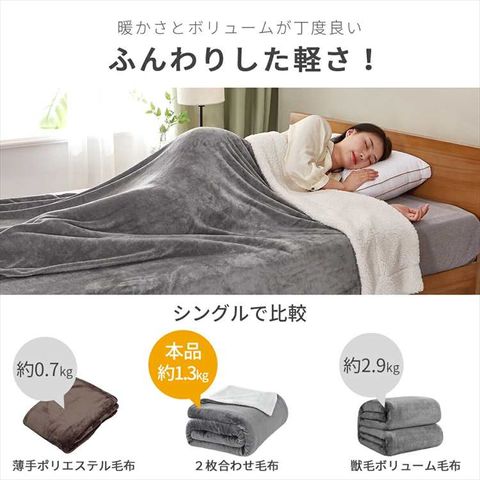2枚合わせ 毛布 シングル 140×200cm ダブル 180×200cm ブランケット ボア ハイボリューム あったか 暖かい 冬 冬用 フランネル 洗える リバーシブル