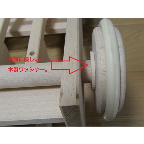 | 商品説明 | あんよの練習ができる日本製の手押し車です。 前進するとかわいいワンちゃんたちが交互に跳ね上がり、「カタカタ」と木製ならではの楽しい音が出ます。 全てのタイヤに衝撃吸収のゴムがついていて、スムーズに進みます。 転倒防止のため、取っ手を引いてもバックしない安心な仕組みです。 無塗装無着色の天然木を使用し、防腐剤や防虫剤は一切使用されておらず、無塗装の白木なので木の温もりをたっぷりと感じ、丁寧に面取りが施されています。 見た目もシンプルなので、どんなお部屋にもマッチしてデザイン性の高く、化粧箱入りで出産祝いなどのギフトにも人気! あんよの練習用に、男の子にも女の子にもオススメ! |