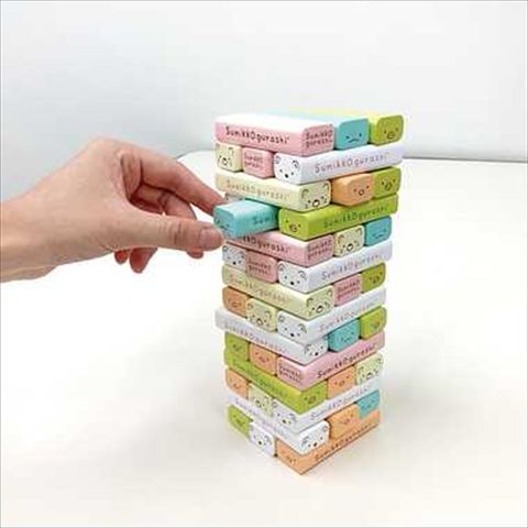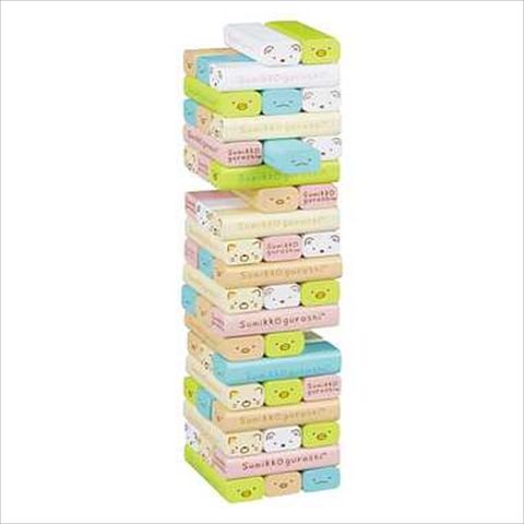 商品説明●かわいいすみっコたちを積み上げよう! ●すみっコぐらしのかわいいイラストのブロックをどんどん積み上げるハラハラドキドキのバランスゲーム。 ●サポートパネルが追加され、ゲームの準備が簡単に! 【遊び方】プレイ人数:1人以上  プレイする順番を決める。 カード又はサイコロを使ってキャラクターを選択。 選択されたキャラクターのブロックをタワーが崩れないように下の段からとってタワーの上に積み上げる。タワーを最初に崩したプレイヤーの負け!