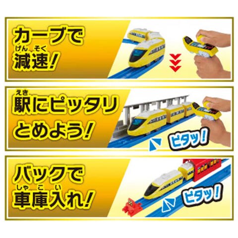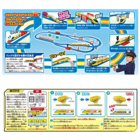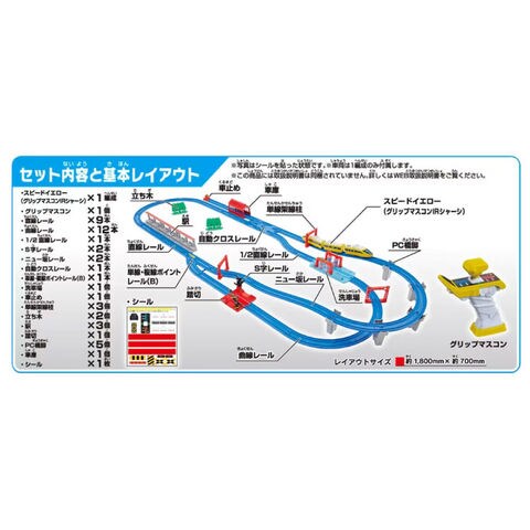 | 商品説明 | 加速・減速、停車・バック、6段階のスピード調整! グリップマスコンでスピードイエローを自在にコントロール! コントロールあそびがより楽しくなる、大きなレイアウト付き! プラレール鉄道のスピードイエローをグリップマスコンで簡単操作、自在にコントロール! 加速・減速、停車・バックなどリアルな走行を楽しもう!! ■スピードイエロー車両(グリップマスコンIRシャーシ)、特別カラーのグリップマスコン付属 ■特別カラーの車庫や洗車場などコントロールあそびがより楽しくなるレール部品&情景部品付属 ■好きなプラレール車両(別売)にのせかえ可能 ※一部車両を除く ■グリップマスコンシリーズの車両が2台あればAとBのバンド切り替えで別々に走行させることが可能 ※セット内容に車両は1編成のみ付属します。 ※セット内容以外のレール、情景は別売です。 ※グリップマスコン:単4形アルカリ乾電池×2(別売)、車両:単3形アルカリ乾電池×1(別売) |