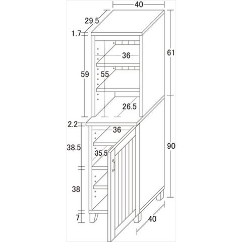 カントリー ハイキャビネット スリムタイプ リビング キッチン キャビネット シェルフ ボード カントリースタイル 北欧調