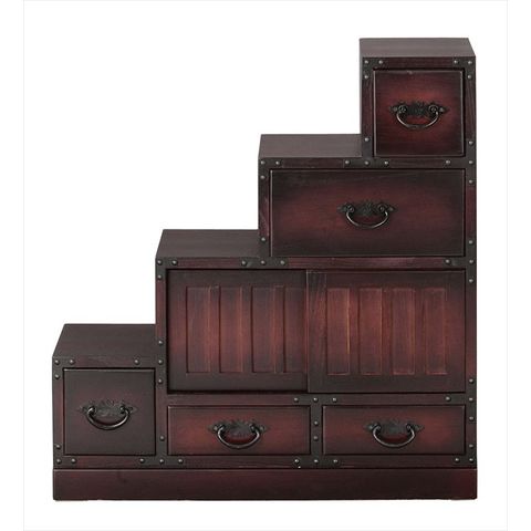 | 民芸調 階段箪笥 左下がり 和室 和タンス 和風 天然木 昭和レトロ 和モダン 桐たんす アンティーク和家具 茶箪笥 古家具 引き出し 木製 完成品 組立不要 |