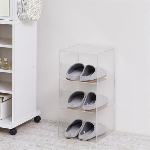 | インテリア ズレ防止クッションシール付き シンプル 透明 クリアケース スリッパ収納 物置き テーブル 棚 完成品 新生活 引越し 引っ越し |