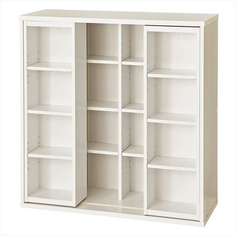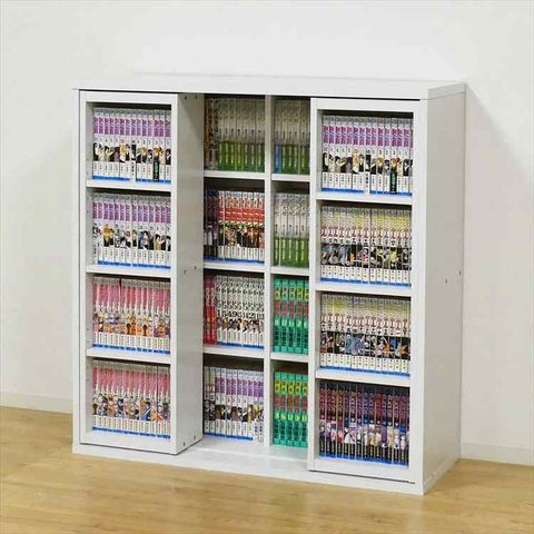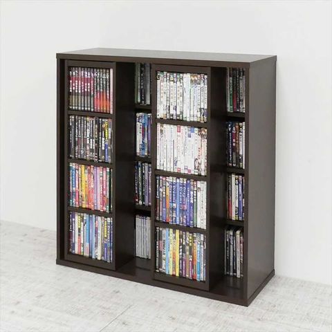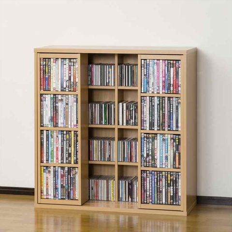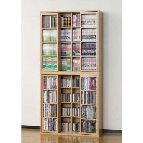 | 商品説明 | 後ろの棚の本も取り出しやすい前面スライド式。連結金具付で、2台積み重ねることもできます。奥の棚1列にCD41枚・DVD28本・コミック本27冊、スライド棚1列ににCD21枚・DVD15本・コミック本14冊、収納できます。 |
