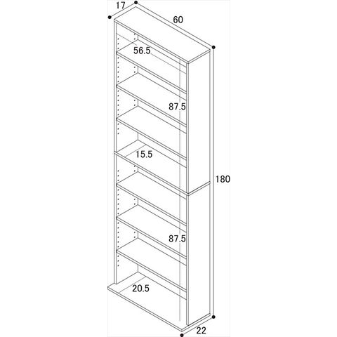 | サイズ | 【ダークブラウン】幅60cm 奥行22(17)cm 高さ180cm 【ナチュラル】幅60cm 奥行22(17)cm 高さ180cm 【ホワイト】幅60cm 奥行22(17)cm 高さ180cm |