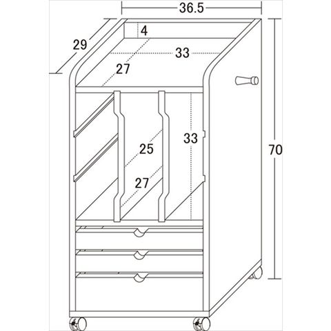 商品説明リビング・玄関・書斎・子ども部屋・・・どこでも便利に使えます。 仕切板は用途に合わせて縦横どちらでも設置できます。 熱やキズに強いメラミン樹脂を使用しています。 詳細:背面穴=約W20×H4.5cm キャスター4ヶ付(ストッパー付2ヶ) 背面化粧仕上げ 仕切板2枚(縦横どちらでも設置可能、ミゾ10.3cmピッチ) 引出内寸(小2杯)=約W30.5×D23.5×H4cm(ストッパー付) 引出内寸(大1杯)=約W30.5×D23.5×H6.5cm(ストッパー付)